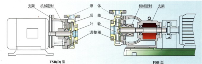 FSB(D)型氟合金離心泵采用目前為先進(jìn)的外裝式四氟波紋管機(jī)械密封,擁有多層保護(hù),延長了機(jī)封使用壽命,對于輸送含雜質(zhì)顆粒介質(zhì)時(shí),可配用無冷卻水單端面硬對硬(碳化硅對碳化硅)機(jī)械密封,所以用戶選型時(shí)需考慮到介質(zhì)中的固體含量。
