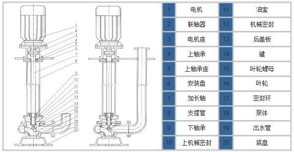 要確認(rèn)液下排污泵型號(hào)首先我們應(yīng)該要了解此類水泵的分類,一般的液下排污泵可分為三種,第一種是單管的,所謂的單管也就是電機(jī)下面一根管連接泵頭。第二種是雙管,所謂的雙管就是在單管的基礎(chǔ)上面又加了一根出水管,這個(gè)便是雙管。第三種是方盤,所謂的方盤就是在雙管的基礎(chǔ)上面又加了一個(gè)方盤固定。