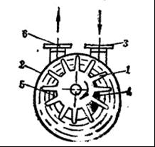 1-葉輪,2-泵殼,3-進(jìn)氣管,4-進(jìn)氣空間,5-排氣空間,6-排氣管