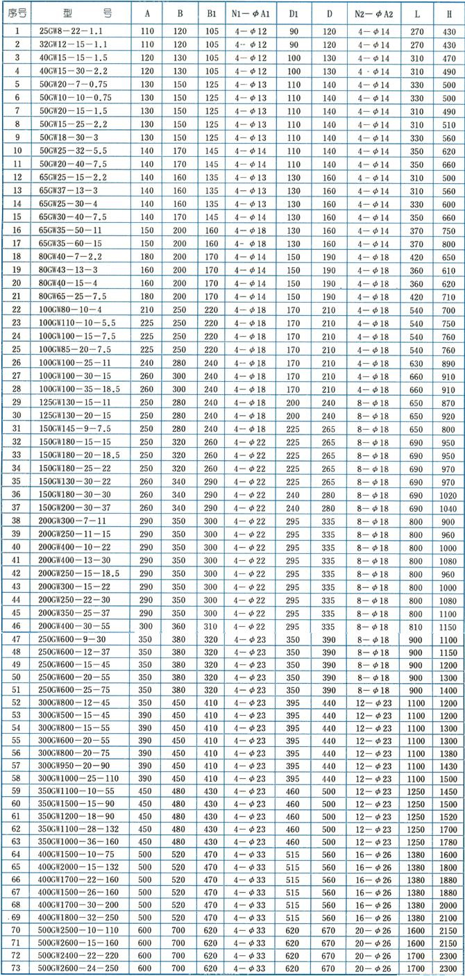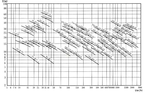 【GW型立式管道排污泵】性能型譜圖: