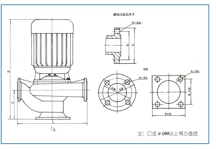 【GW型立式管道排污泵】安裝尺寸圖: