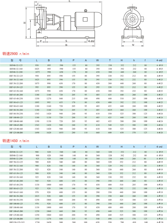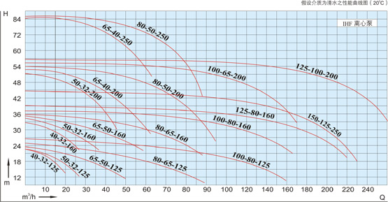 例:IHF50-32-125 IH:標(biāo)準(zhǔn)化工離心泵代號 F:泵的主要材料為氟塑料