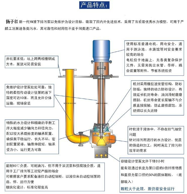 YW液下無(wú)堵塞排污泵產(chǎn)品特點(diǎn):