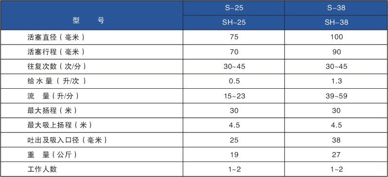 目前所制造的本型泵有:S-25、S-38及SH-25、SH-38等四種。