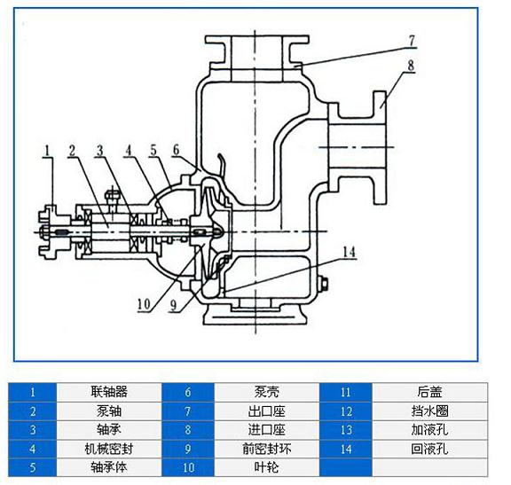 在一些泵的軸承體底部還設(shè)有冷卻室。當(dāng)軸承發(fā)熱引起軸承體溫升超過(guò)70℃吋.可在冷卻室處通過(guò)任意一只冷卻液管接頭.注入冷卻液循環(huán)冷卻。泵內(nèi)部防止液體由高壓區(qū)向低壓區(qū)泄漏的密封機(jī)構(gòu)是前后密封環(huán).前密封環(huán)裝在泵體上.后密封環(huán)裝在軸承體上,當(dāng)泵經(jīng)長(zhǎng)期運(yùn)轉(zhuǎn)密封環(huán)磨損到一定程度,并影響到泵的效率和自吸性能吋.應(yīng)給予更換。