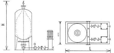 (1)構(gòu)造:本設(shè)備是由隔膜罐(空壓罐)定壓泵,控制柜三大件組成。