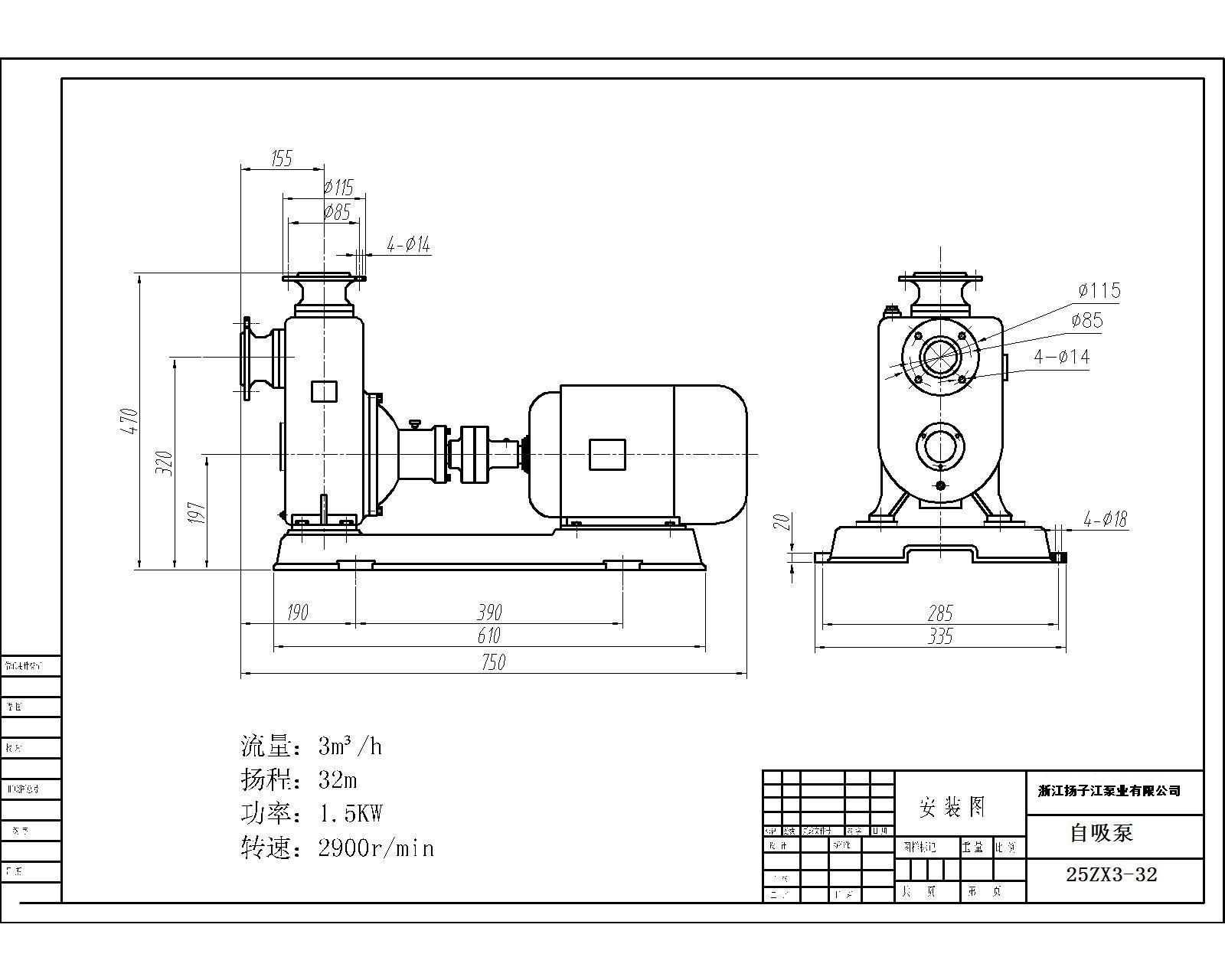 25ZXPB3-32型防爆不銹鋼自吸泵甲醇泵甲醇汽油泵安裝尺寸圖