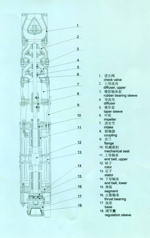 QJR熱水潛水泵結(jié)構(gòu)圖及材質(zhì)分析