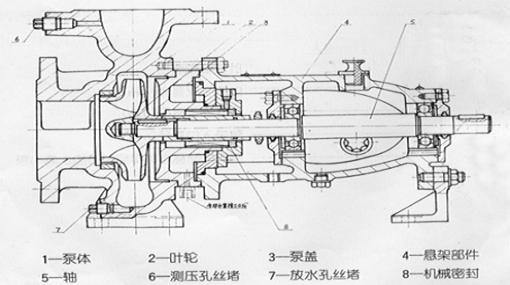 IS/ISR單級單吸離心泵結(jié)構(gòu)圖及結(jié)構(gòu)說明