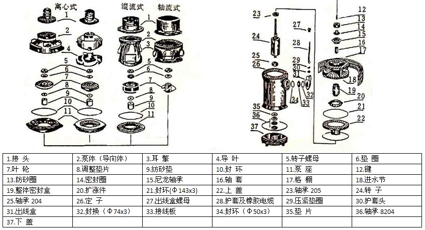 QY型充油式潛水泵結(jié)構(gòu)圖