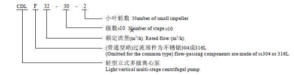 CDLF立式不銹鋼多級離心泵型號意義: