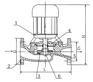 4. SGB系列防爆管道泵適用于輸送無腐蝕液體,有甲烷或煤礦井下固定設備I類及工廠IIA,IIB級,溫度組別為T1,T2,T3,T4組存在爆炸性混合物的其它工業(yè)場所。使用溫度80℃以下。